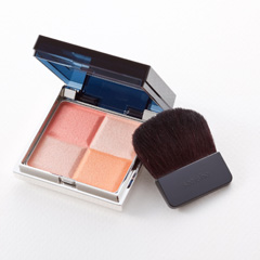高い発色で、頬の血色を一気にアップ! - ニュアンスをつけやすいパウダータイプ。頬の内側からほのかに上気したような血色感と、つややかな表情を演出。メイクプロセスでは、右下のフレッシュンなオレンジを使用。