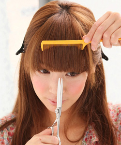 5. くしを通してバランスチェック 長さが整ったら、くしを通してバランスチェック。厚みがあるところは、ハサミを少し斜めに5mm程度入れて軽さを出していきます。整っているラインを軽く崩すとナチュラルな仕上がりに。 これで完成です! 番外編:セニングシザーでもっと便利 セニングシザー(すきバサミ)は普通にハサミを入れても、髪をすくことができるので5の工程を、もっと簡単にカットすることができます。 自宅でよく前髪をカットする人は、持っていると便利なアイテムです。 前のページへ1…345…13次のページへ