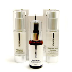 クリニックでしか手に入らない、本格的なシミやかんぱんの治療薬。肌の再生を促進するトレチノインと、肌の美白剤ハイドロキノン、ビタミンCやアルブチンなどの美白有効成分を配合。シミを予防すると同時に、できてしまったシミのメラニンを破壊し、またメラニン代謝を促進させることで、シミを治療。