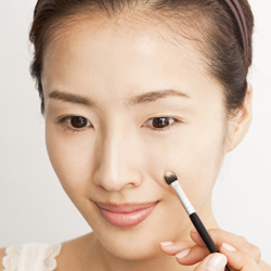 - パウダリーファンデをメイクチップにとり、ぼんやり見えているシミをカバー。小さなチップを使うことで、無駄塗りを防ぎ、透明感をキープします。色は明るすぎず、暗すぎず、肌色と同じトーンがベスト。