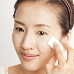 - モヤモヤ状のシミが広がっている部分に、イエローのコントロールカラーを薄く広げます。片方の頬で小パール1個分くらいが目安。指をすべらせるのではなく、トントンとタッピングをして広げます。のばしすぎないのがポイント。