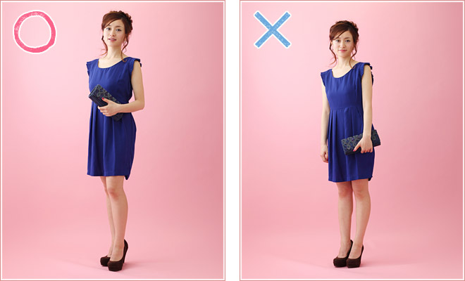全身撮影のときは基本姿勢で立ち姿美人に 「脚を前後に交差し、重心は後ろ足にのせる」のが基本姿勢。背筋を伸ばして、腰を少し前に出すイメージです。ここで腰を引いてしまうとへっぴり腰に見えてしまいます。カバンを持っている場合は、前の手のひじにかけましょう。あごは、引きすぎず上げすぎずがポイント。鏡でみてチェックしてみましょう。とくに、上げすぎるとエラそうに見えてしまうので要注意です。 このページは2012年12月18日時点の情報です 前のページへ1…345…12次のページへ