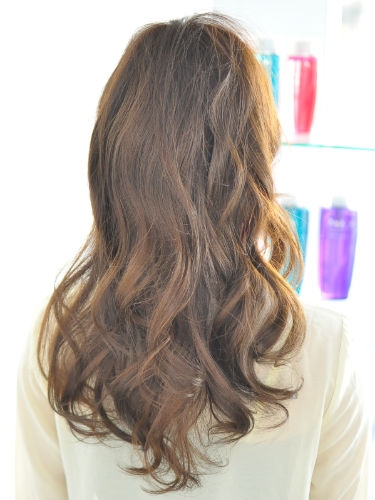 まろやかでツヤのあるロングスタイルは、髪のボリュームが気になる人にも最適なヘアスタイルです。