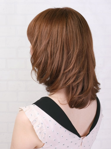 大きめワンカールで包み込むイメージの、品のよい肩下ミディアムヘア。朝のセットも簡単な楽チンヘアスタイルです。