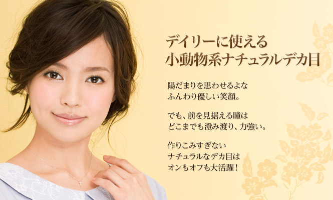 小動物のように、くりっとしたデカ目は、愛され度抜群! 丸くて、目と目の距離が近いところが、堀北さんの目の特徴です。目のキワに隠しラインを入れたり、茶色のペンシルライナーで目頭に切れ込みを入れたりして、さりげなくデカ目をかなえましょう。なるべく作りこんでいないように見せるのが目標ですよ。