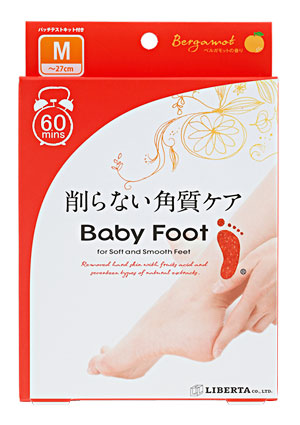 「ベビーフット」は、フルーツ酸がターンオーバーを促し、余分な角質を優しく落とすというもの。付属のビニール製の靴下のようなものにジェルローションが入っているので、足を入れて1時間浸透させればOK。使用して2~7日後には、脱皮したかのように、つるんと角質が剥がれます!