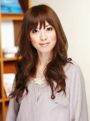 ゆるめのウェーブを描くロングスタイルは王道人気。内巻きのカールだけでなくリバースの毛流れをミックスすると毛先にボリュームを持たせることができま す。つややかなストレートと、そこから流れるようにつながるウェーブで全体的にまとまりのある上品な仕上がりに。前髪は厚めに取って流し、目元の印象力を アップさせて。