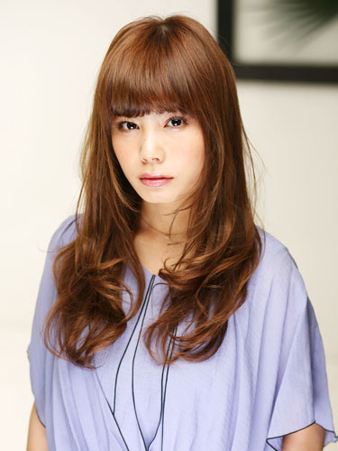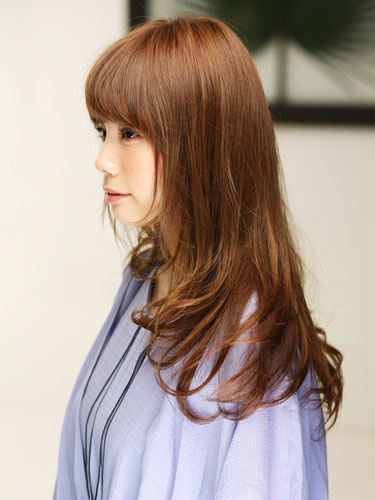 前髪にパーマをかけてCカールの丸みをつけています。顔の丸みに合わせて厚みのある前髪がフィットしているので小顔に見える効果も。さらに、顔周りにシャープな毛束を残すことで凛とした印象を引き出します。