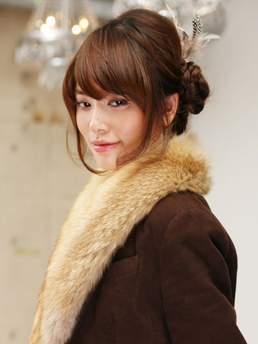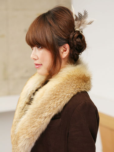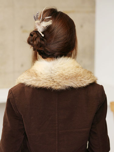 首元で圧倒的な存在感を放つロングのファーマフラー。そのエレガントさにぴったりなのが三つ編みでのおだんご。ただのおだんごよりも大人っぽく、手の込んだ仕上がりに見えます。編むときも巻くときも適度なボリューム感を意識して。