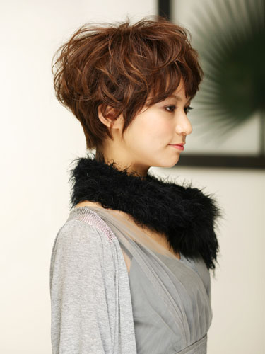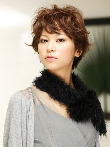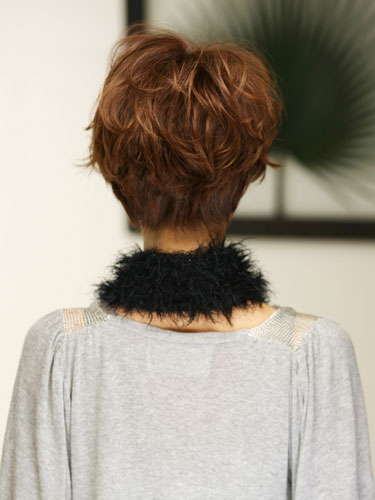 上品なファーマフラーのときに、ヘアスタイルをあえてラフにくずすとこなれた雰囲気が出て洗練された印象に。ショートはまとまりすぎると地味な印象になってしまうのでトップから内巻きと外巻きをミックスしてふんわりとした動きをプラスします。