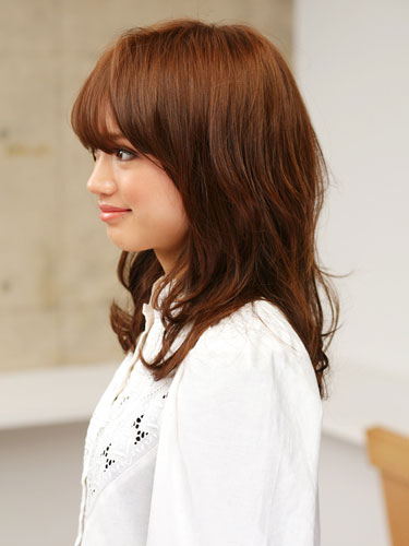 全体に厚みを残してゆったりとしたカールで流れを作った、温もりあふれるスタイル。前髪からサイドへと大きく深めにつなげて大人の余裕を感じさせます。レ イヤーをあまり入れない重めのスタイルは一歩間違うと野暮ったくなりがち。絶妙にレイヤーを入れることで、しっとりとしたまとまりと柔らかな動きの双方が 際立ちます。