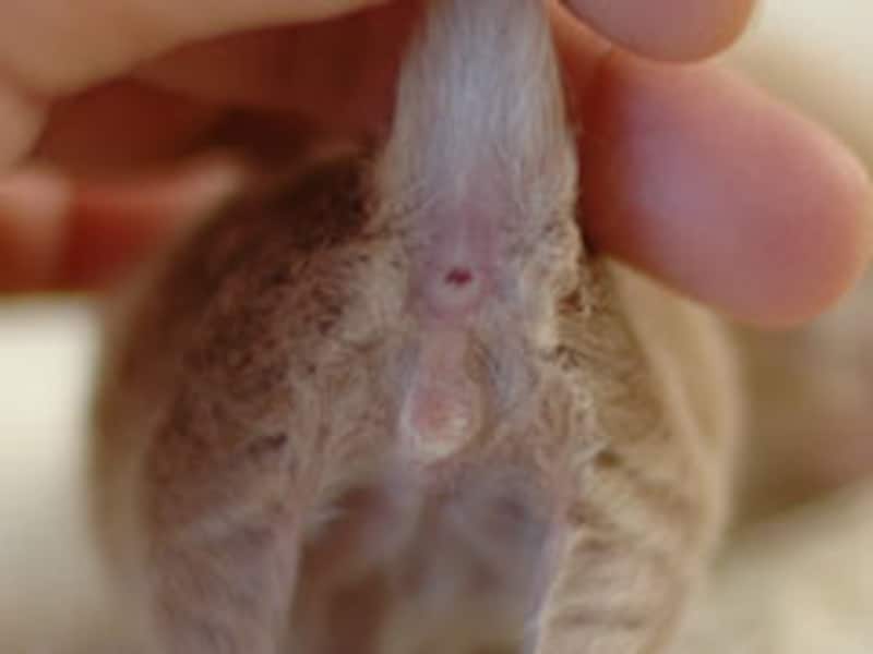 | お尻の穴と陰部が近い方が女の子です | 離れている方が男の子です 子猫のうちは、陰嚢が目立たない子もいます |