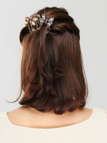 挟むだけのクリップなら、ハーフアップを簡単に留めることができます。キラキラ輝くカラフルなストーンが付いた蝶モチーフのクリップは存在感大。カラーバリエーションを揃えてよりゴージャスに。