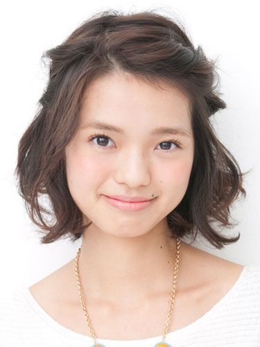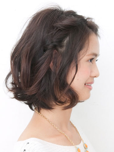 中途半端な長さの前髪をルーズにツイストしながら耳後ろでまとめてフェミニンキュートなアレンジで簡単にオシャレに見せましょう!
