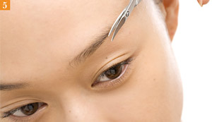 - 長くのびて垂れ下がり、はみ出している毛を眉用のハサミでカット。眉の下ラインに沿ってハサミの刃を当て切り進める。