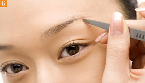 - 眉山下の眉弓骨ゾーンに余分な毛がある場合はトゥイザーで抜く。ここにムダ毛があると眉の輪郭が崩れるので要注意。