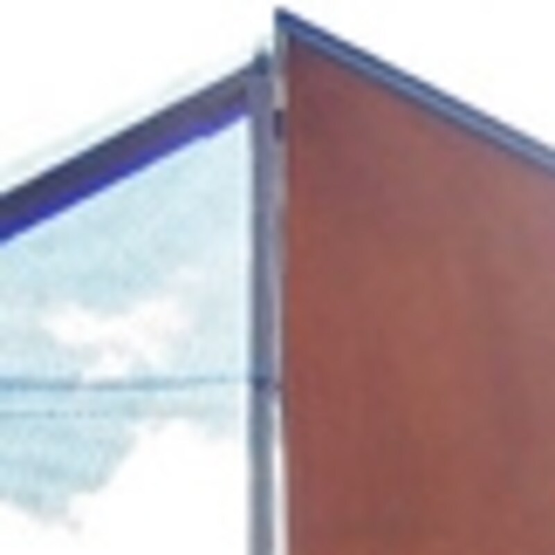 | 1. 錆びた壁とガラスとエキスパンドメタルという素材で三分割された外壁。南側の土地は隣家が農地として使っている。 |