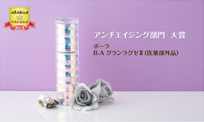 受賞した全商品内でNo.1の高額商品。価格と比例するかのようにプロたちの評価も非常に高く、激戦のアンチエイジング部門のトップに!ポーラが誇る成分がこの1本に集結したと言っても過言ではない、高いクオリティが人気の理由。新発見の「オーラ粒子」により、オーラをまとったような輝く肌に。