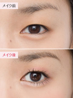 明るめカラーと目尻ライン、上向きまつ毛で目力アップ