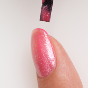 爪の際までしっかり塗ることを意識して、なじみカラーなら肌についても気にせずにサッとひと塗り。二度塗りも同様に仕上げ、発色をアップさせて。ただし、濃い色はしみ込んでしまうのですぐにオフすることが大切。