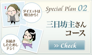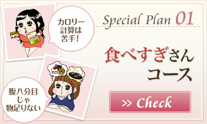 ご飯をたくさん食べてしまう「食べすぎさん」は、その分動いて「食べたことをなかったことに」しましょう! まずはゆっくり体を動かし、慣れてきたら、引き締め効果の高いものにトライ。「三日坊主さん」には、楽しく動いて続けられるメニューを組んでいます。どちらも個性に合わせた無理のないメニューなので、きっと成功しますよ!