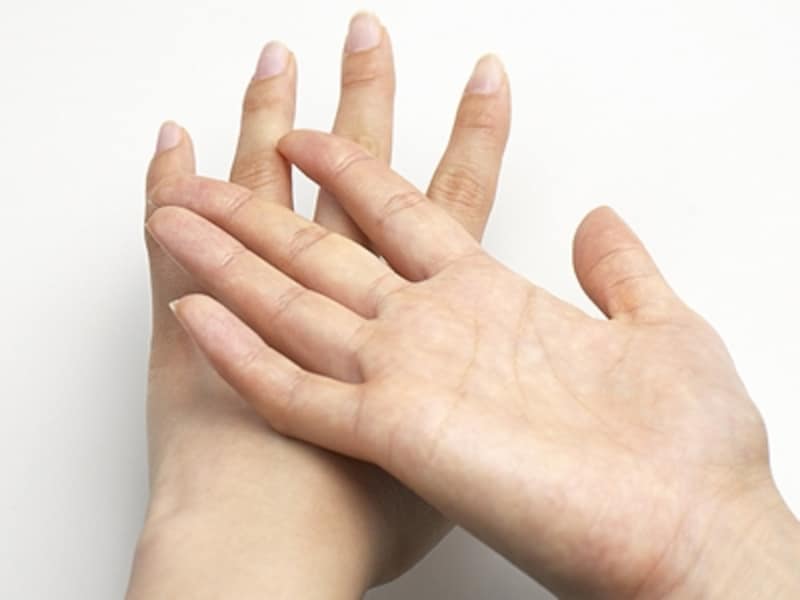 爪表面を磨いた後はハンドマッサージ。手にはたくさんのツボがあるため、体全体にも好影響があるのはもちろん、新陳代謝が促されるので健康な爪の育成にもつながります。このマッサージは毎日の習慣にするとよいでしょう。■ネイルケアの手順