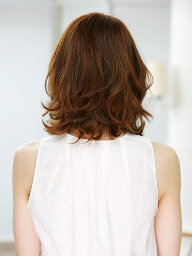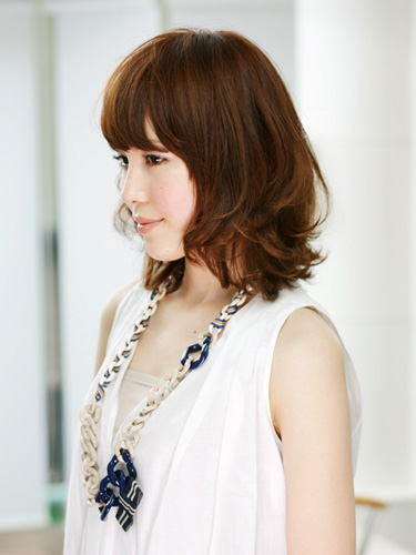 前髪に透け感をもたせ、肌色の美しさを演出。顔まわりを重くカットすると、頬に影が落ちて暗く見えてしまうので要注意。顔まわりに透け感を作ってハイライトの立体感も強調し、肌色をきれいに見せます。