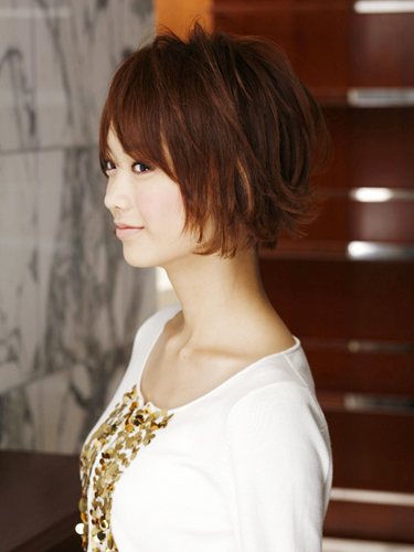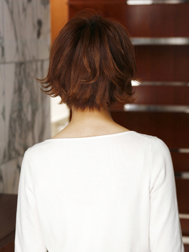 明るく好感度の高い外ハネが印象的なショートスタイル。目尻の高さから外ハネを作ることで華やかな雰囲気になります。また、外ハネは動きを出すと同時にスタイルのボリュームアップして見せる効果もあるので、目尻の高さから重さと軽さを取り入れた遊び心を垣間見せるフォルムに。ウエイトの位置を少し上げることで、新しい重めレイヤースタイルの完成です。