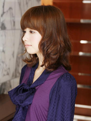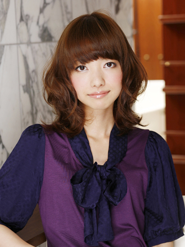 耳横の高さと毛先にダブルでボリュームをつけることで、少しくびれをつけたのがスタイルのカギ。しっかりと重さをつけながらも柔らかな動きのある落ち着いたスタイルに。前髪を深く取ると全体のバランスがよく見えます。