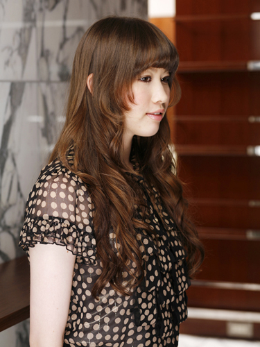 毛先を重めに仕上げている分、外国人風のゆるいウェーブで軽さをプラスします。トップのツヤ感と髪の中間からのウェーブのコントラストが絶妙。スライドカットで毛量を調整し、ゆるい動きが出やすいように作り込んでいます。