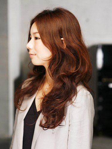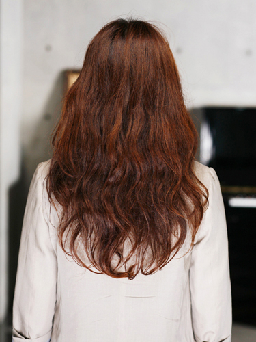 毛先全体に強めのカールをつけることで、レイヤーの部分でカールが重なりボリュームが出ます。レイヤースタイルだけど、軽くなりすぎず、重厚シルエットで上質感あふれる仕上がりに。