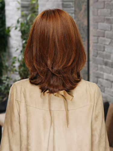 トップから放射状にレイヤーを入れて、髪表面に軽さをプラス。ベースの重さと、透け感のある軽い動きがマッチしてエレガントな雰囲気も感じさせる仕上がりに。ベースに重さを残すことでガーリーではなく大人っぽい印象にチェンジ。
