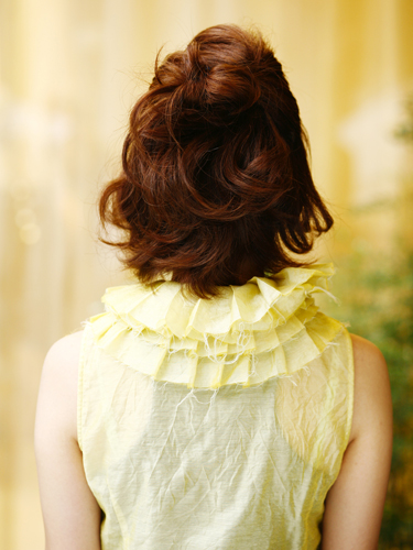 かわいらしくまとまりすぎないよう、トップにボリューム感を持たせることでゴージャスに。ハーフアップできちんと感を出しながら、毛先の遊びで華やかさを演出して。