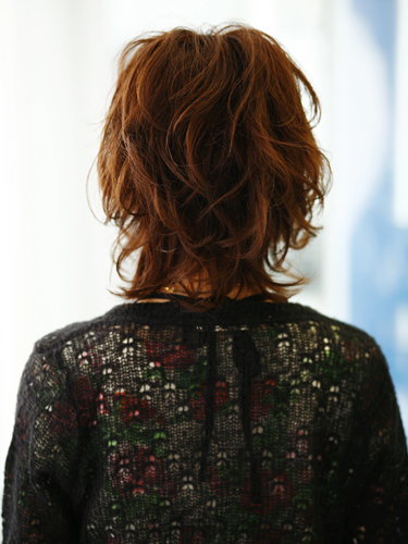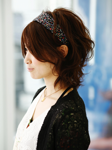 太めのカチューシャがアクセントとなり、ふんわりとラフな仕上がりを引き立てます。カジュアルながらも、センターパートで長めの前髪が大人っぽい印象のスタイル。