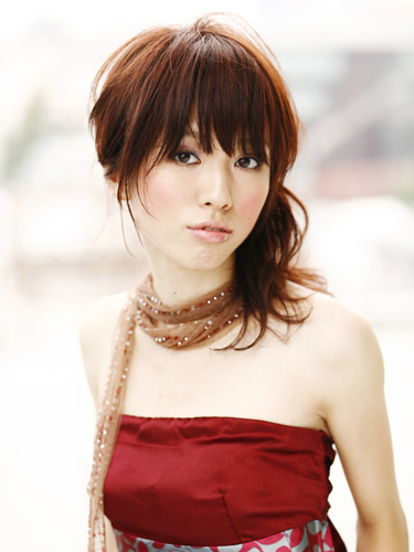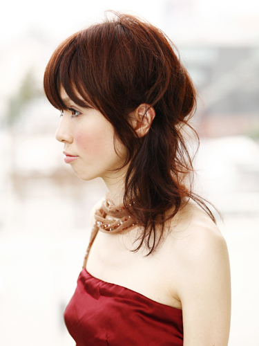 フェイスラインの髪を残してどちらかのサイドにまとめ、下にねじりながらピンで根元を固定。ややハードタイプのワックスをつけてから、毛先を散らします。ボリュームを出しつつも適度に束感をつけて。