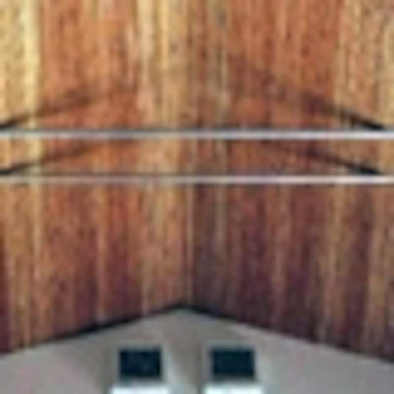 | 4. 納屋の入口のようなデザインの玄関扉。隙間からの光で玄関ホールが明るく照らされる。 |