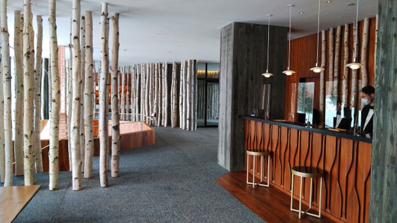 北海道のイメージシンボル・白樺を基調にしたおしゃれな玄関とプロムナードを通り抜け、館内に足を踏み入れると……。