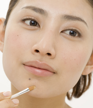 クマを隠すときは、下まぶたの目頭側を基点に放射状に塗布。影になりやすい目頭側から塗ると自然に他の部分よりも明るく。クマには自分の肌色より明るめの肌色をセレクト。