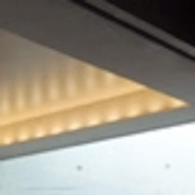 | 1. ベッドと同じ大きさのLED照明のフレームが取り付いた予備室。 |