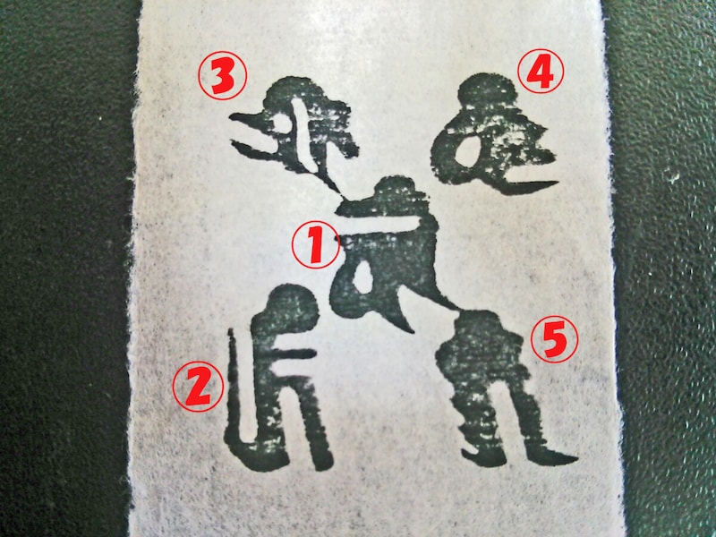 この秘符は食べ方が決められています。まずお札の文字部分をちぎり、最初は真ん中(写真の1)を、次に左下2、左上3、右上4、右下5の順で、薬を飲むように水と一緒に飲み込みます。この秘符は社務所にて400円で授与(事前の連絡が必要)していただけます。