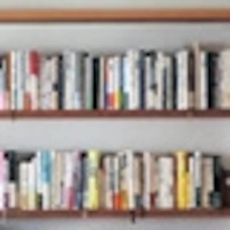 一方、向かいの北側の壁には本棚が折れ曲がりながら奥まで続いていて、飾り棚としても使われています。