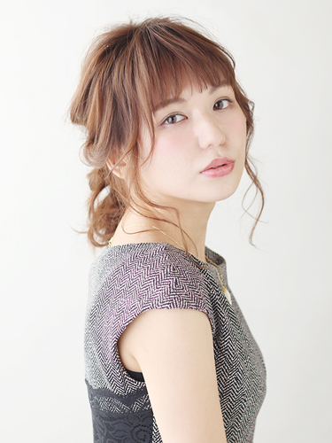 アレンジした髪の表面部分をランダムにほぐし、ルーズな雰囲気を出すのが今年流。“縦にほぐす”イメージで高さを出して行くと、立体的に仕上がります。ボリュームが出るよう、あらかじめコテで強めに巻くと失敗しません。