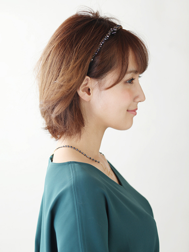 マットな黒ストーンと、ブラウン&クリアのダイヤ型ストーンが散りばめられた大人っぽいカチューシャ。甘くないデザインで大人っぽくまとまるので、これまでカチューシャを敬遠してきた人にもトライしてほしい1点です。