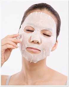 10分ほど経ったら、シートマスクの上から氷を当てる。1ヶ所につき20秒くらい冷やしてキュッと引き締め、気になる場所は念入りに。氷の代わりに保冷剤でもOK。顔全体に行ったあとマスクをはがし、顔に残った美容液は肌になじませる。