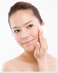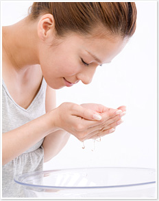 たっぷりのローションをコットンに取り、肌全体にトントンと軽くたたくようになじませる。肌を触ってみてひんやりとした感触を感じられるようになればOK。しっかりと化粧水を補給できた証拠です。