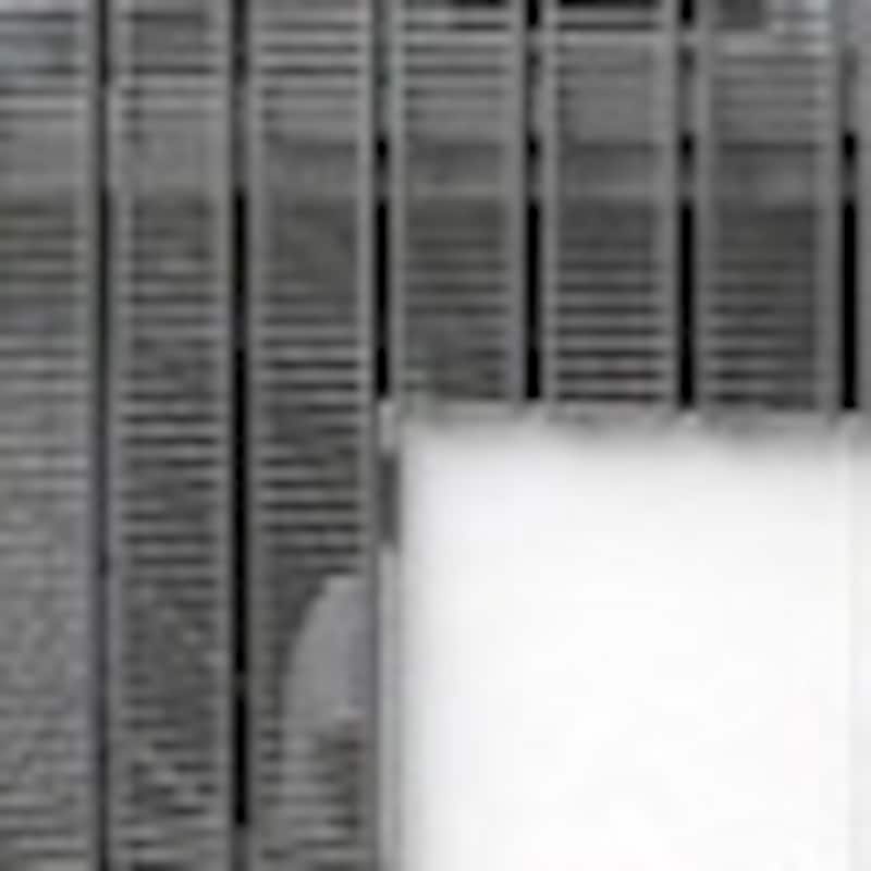 | 2. 亜鉛メッキ仕上げの足場板のファサード。白くペイントされた鉄製の玄関がアクセントになっている。 |