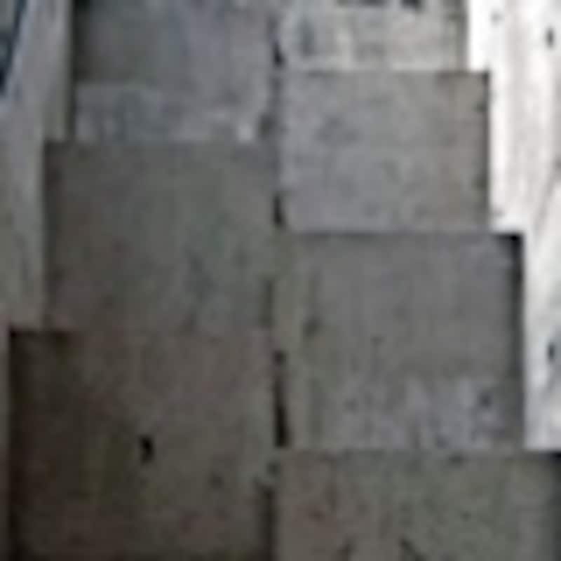 1. 北側の外観。高さは約14m。最上階の外壁はガルバリウム鋼板角波スパンドレル。 |