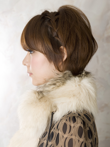 逆毛を立ててふんわりとさせたトップにさりげなく作った編み込みがポイント。まるでカチューシャをつけているかのような編み込みアレンジで可憐なイメージに仕上げて。襟足を外ハネにして柔らかな動きをつければ、大人の女性らしさと女の子らしい可愛さを併せ持つアレンジに。