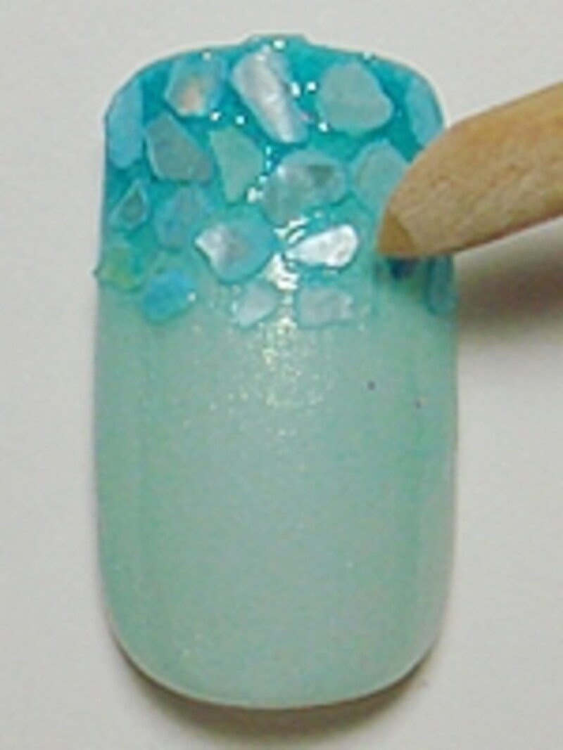 ネイルアートの作り方 1. まずはベースカラー(TiNS214)を2度塗りします。 2. 続いて、ラメ入りポリッシュ(TiNS035)を先端から中央にかけてグラデーションになるように塗ります。 「基本のネイルアート グラデーションを見る」 3. グラデーションが出来上がったら、そこにシェルを一かけらずつ乗せていきます。 乾いてきてしまったら、トップコートを塗り足しながら作業します。 4. 先端から徐々に小さなものを選ぶようにして配置するのがポイント。モザイクタイルのようなグラデーションに仕上げます。 5. 全体にトップコートを塗布して完成です。 浴衣にもおすすめ!夏の涼しげシェルグラデーションネイル 【編集部おすすめの購入サイト】Amazonでネイルグッズをチェック!楽天市場でネイルアート用品をチェック!前のページへ12※記事内容は執筆時点のものです。最新の内容をご確認ください。※個人の体質、また、誤った方法による実践に起因して肌荒れや不調を引き起こす場合があります。実践の際には、必ず自身の体質及び健康状態を十分に考慮し、正しい方法で行ってください。また、全ての方への有効性を保証するものではありません。