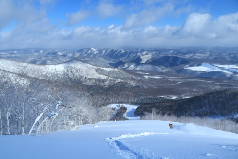 天気の良い日なら、遙かかなたには勇壮な大雪山連峰の絶景が姿を見せてくれます。当地ならではの極上パウダーを堪能しつつ広大なゲレンデを縦横無尽に滑っていれば、あっという間に一日が終わってしまいます。